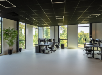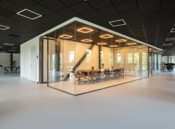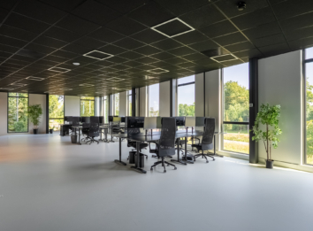 Het kantorengedeelte bestaat uit vier lagen waarbij dit de eerste verdieping betreft. De gezamenlijke centrale entree op de begane grond is zeer verzorgd. Via lift en trappenhuis bereikt u de eerste verdieping.